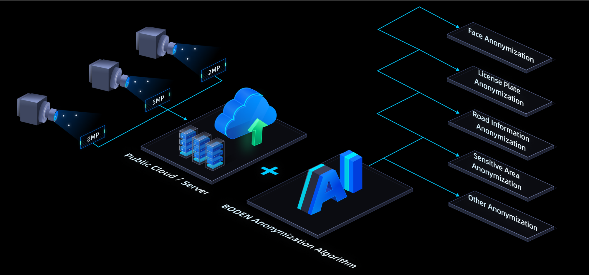 BODEN has developed a high-precision data anonymization model that supports the anonymization of various types of camera data, including license plates and faces from different countries and regions. The model supports deployment on vehicle endpoints, cloud platforms, and local private environments, ensuring data security and compliance.